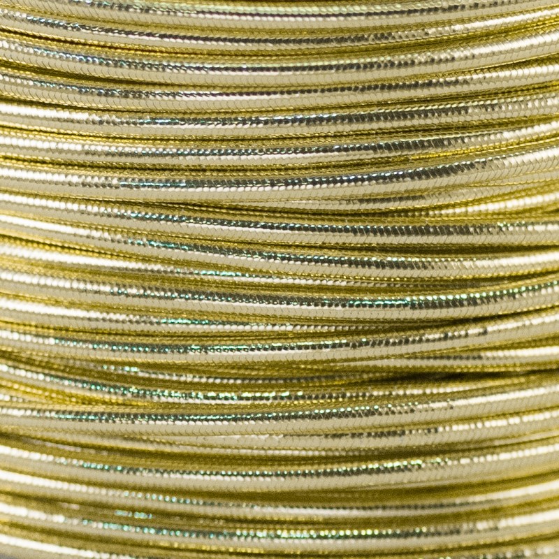 Cordon élastique de couleur or. Le prix est exprimé en mètres, l’achat minimum est de 1 mètre et la largeur de la bande est de 1,5 mm.