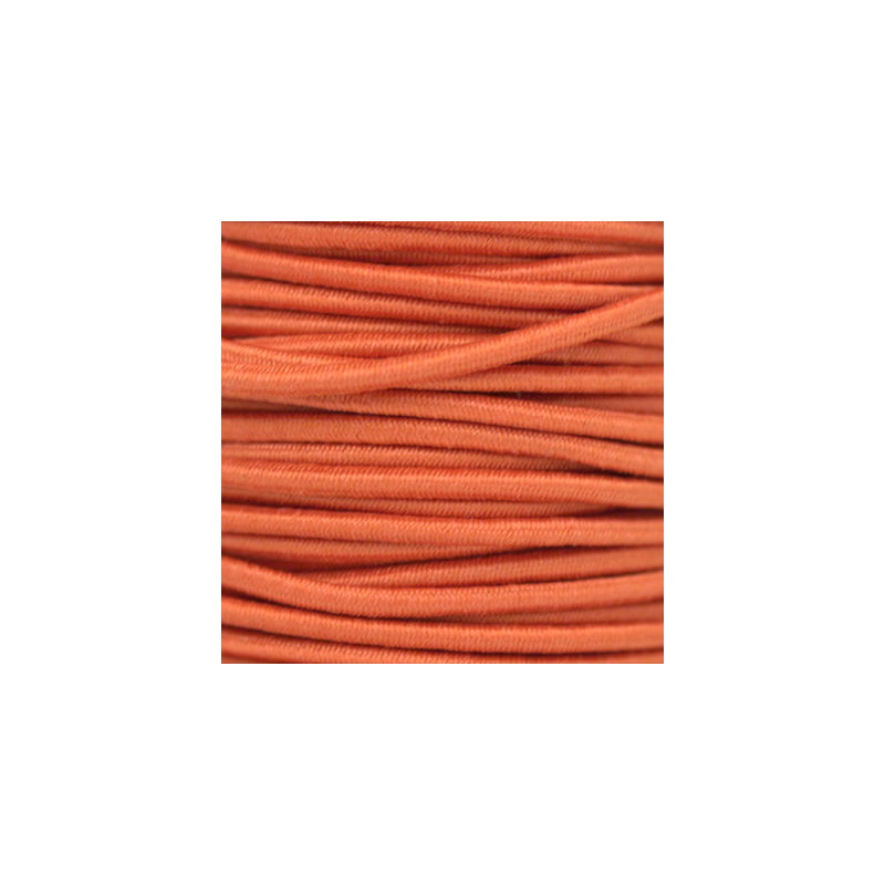 Cordon élastique en orange. Le prix est exprimé en mètres, l’achat minimum est de 1 mètre et la largeur de la bande est de 1,5 mm.