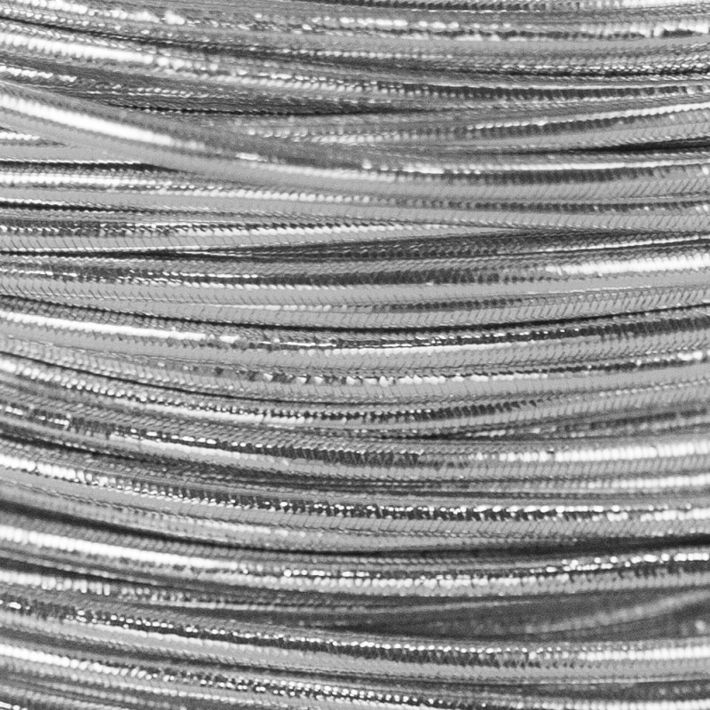 Cordon élastique de couleur argent. Le prix est exprimé en mètres, l’achat minimum est de 1 mètre et la largeur de la bande est de 2mm.