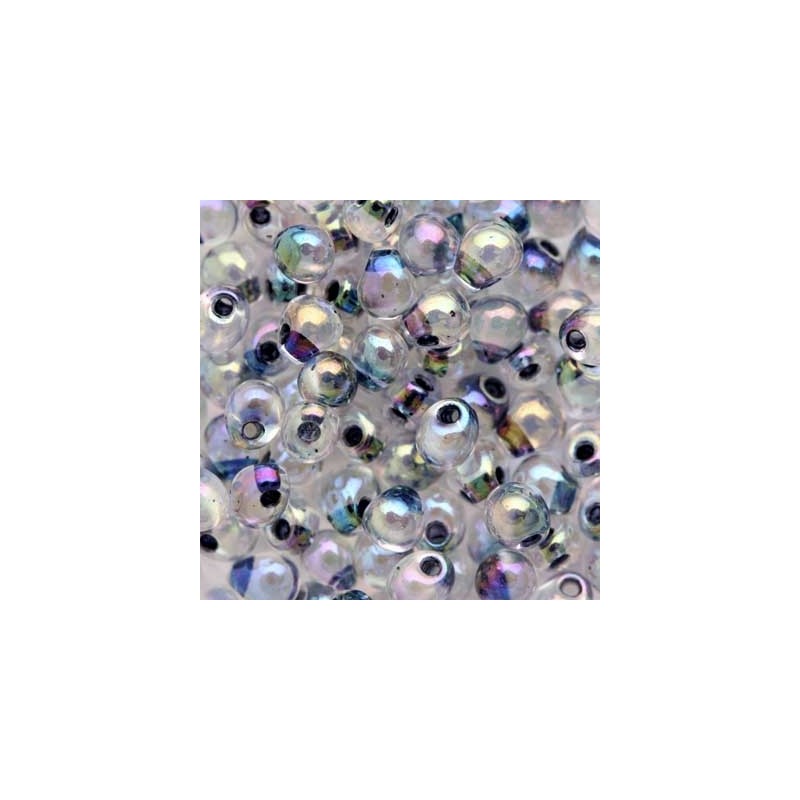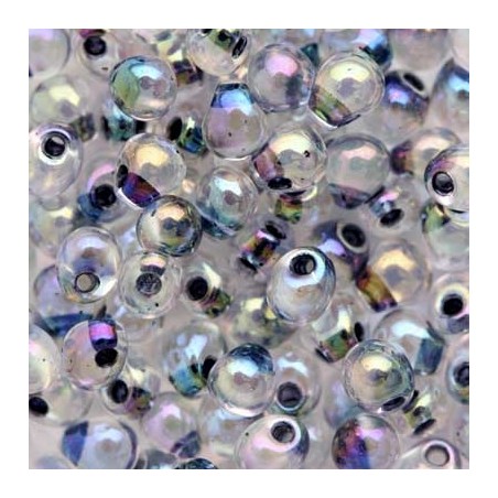 Magatama Miyuki couleur noir doublé cristal AB. Taille 3,4 mm. Vente par sac de 5 grammes.