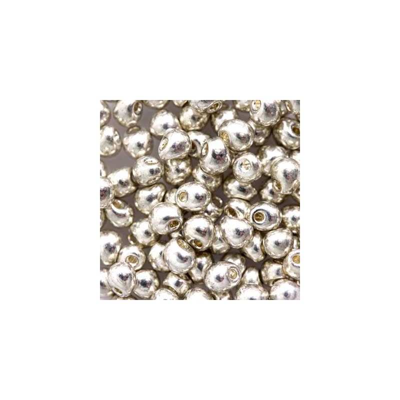 Magatama Miyuki couleur argent galvanisé. Taille 3,4 mm. Vente par sac de 5 grammes.
