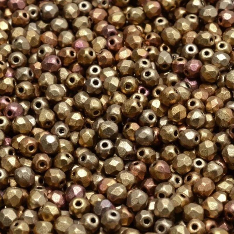 Boule à facettes 3mm. Gold Matte Metallic Mix