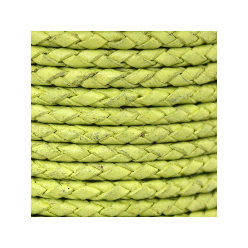 Cuir tressé 3mm. Jaune