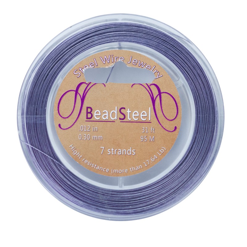 - Fil d’acier composé de 7 fils lilas. La bobine mesure 95 mètres et l’épaisseur du fil est de 0,30 mm.
