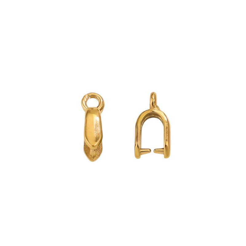Crochet pendentif lisse, 15 mm de long et 5 mm de large, avec anneau de 2 mm. Acier inoxydable doré.