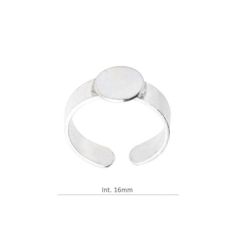 Bague adaptable avec base ronde, en argent 925. Le sac contient 1 unité. La taille est de 19x18 mm. et le diamètre de la base est de 8 mm.