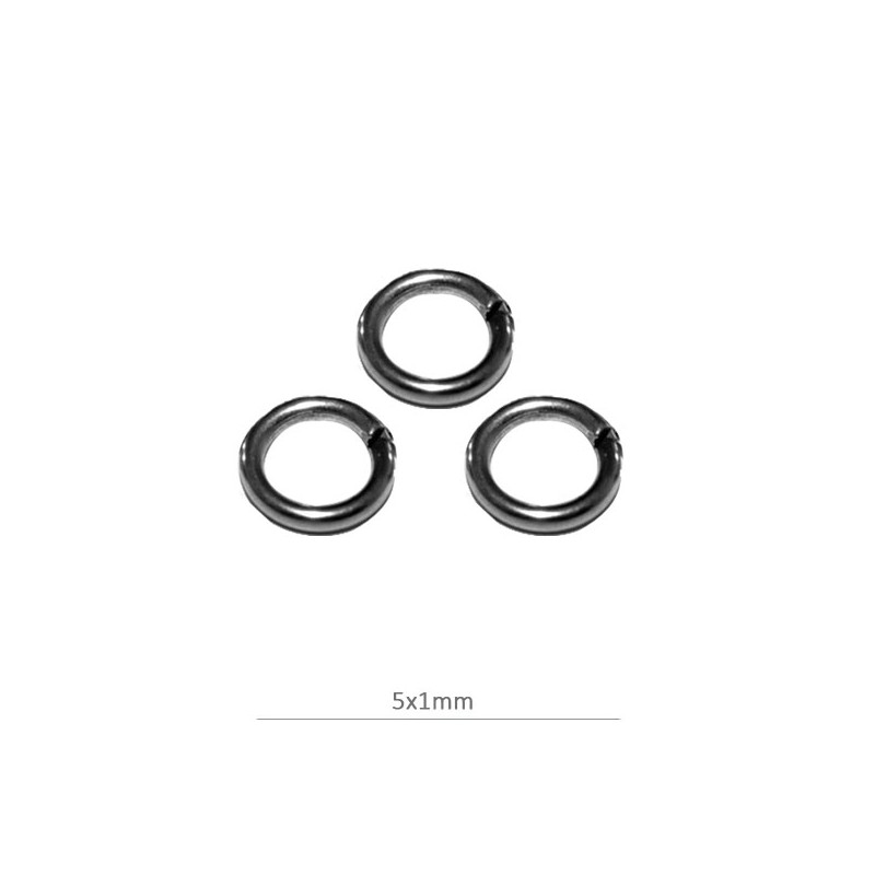 - Bague ronde ouverte en laiton de couleur argent ancienne. - La taille est de 5x1 millimètres. - Le prix est par sac et le sac contient 20 unités.