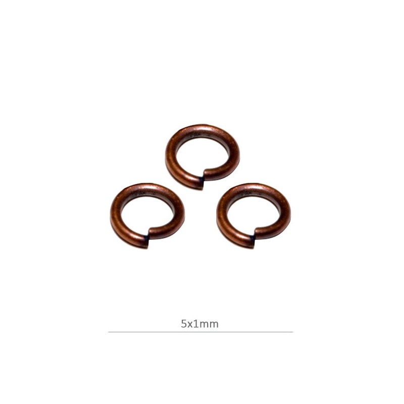 - Anneau rond en laiton ouvert de couleur cuivre. - La taille est de 5x1 millimètres. - Le prix est par sac et le sac contient 20 unités.