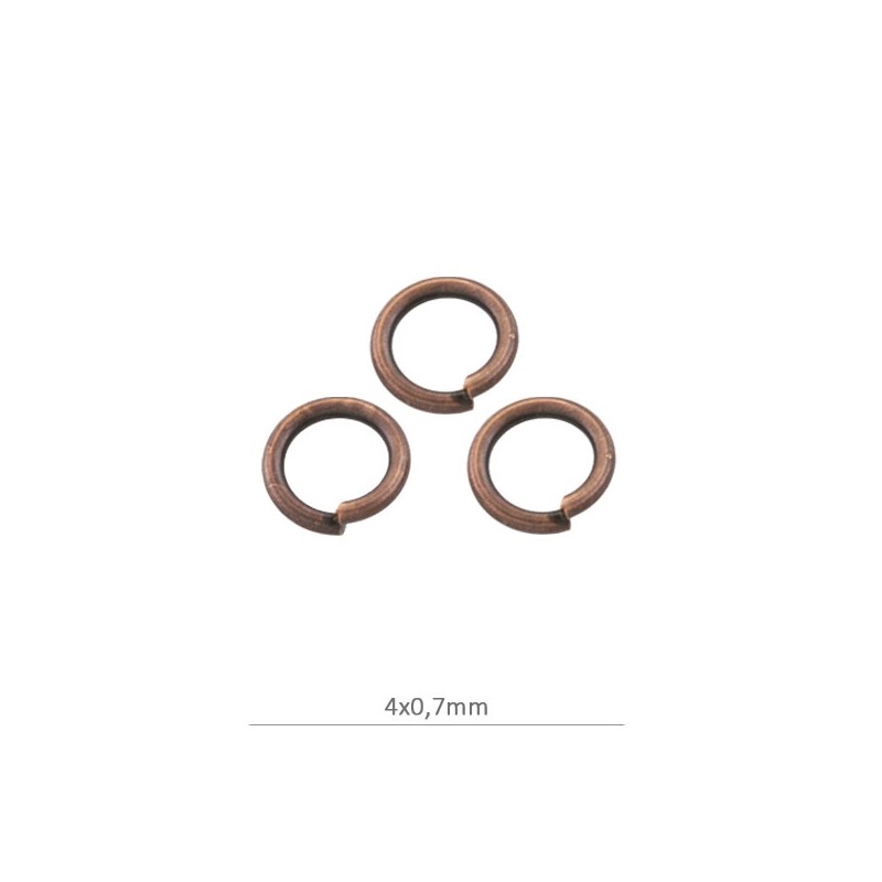 - Anneau rond ouvert en laiton de couleur cuivre. - Taille de 4x0,7 millimètres. - Le prix est par sac et le sac contient 20 unités.