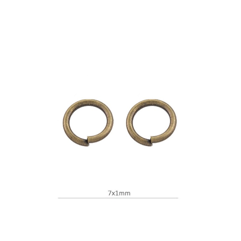 - Bague ronde ouverte en laiton de couleur or ancien. - Taille: 7x1millimètres. - Le prix est par sac et le sac contient 10 unités.