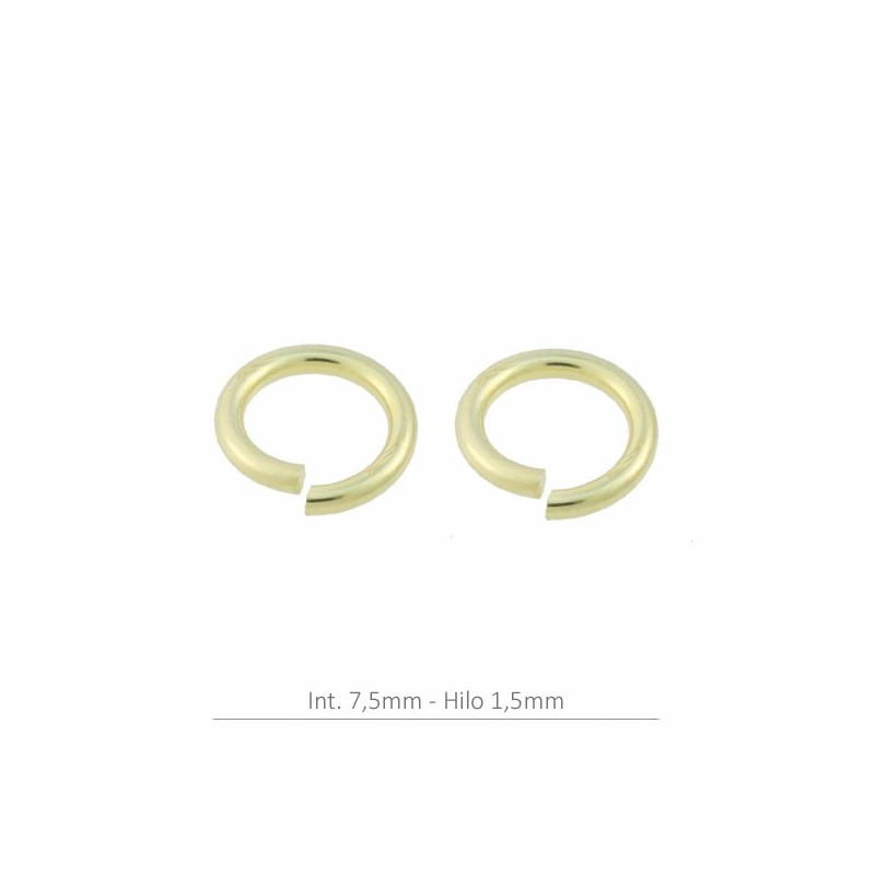 - Bague ronde en argent avec un placage en or. - Le diamètre intérieur est de 7,5 mm. et le fil est de 1,5 mm. - Le prix est par sac et le sac contient 1 piece.
