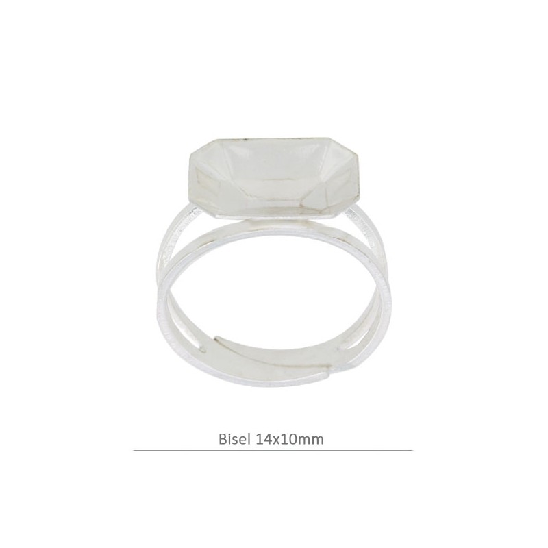 Bague en argent 925 avec lunette rectangulaire de 14 x 10mm dans la zone supérieure spécialement conçue pour les cristaux Swarovski rectangulaires.