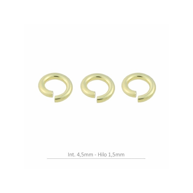 Bague de grande taille, argent avecun placage d’or. Le sac contient 1 unité et le filetage mesure 1,5 mm. Le diamètre intérieur est de 4,5 mm et le diamètre extérieur est de 7,5 mm.