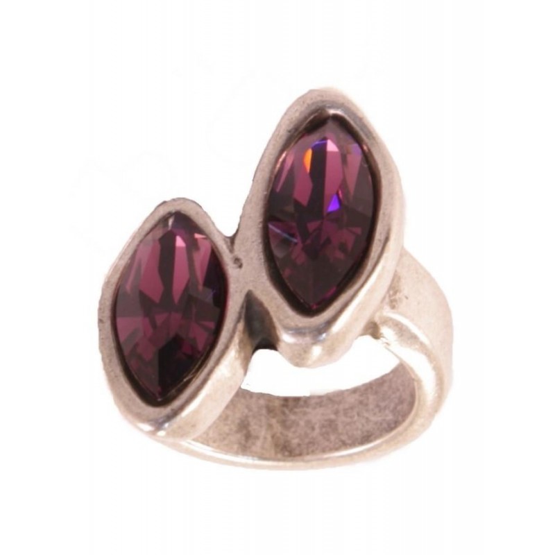 Bague en pierre Swarovski en zamac avec argenté. Le sac contient 1 bague et deux pierres Swarovski à coller. Colle recommandée avec de la colle Haxulith (référence 7405) et laissez-la sécher pendant une journée.