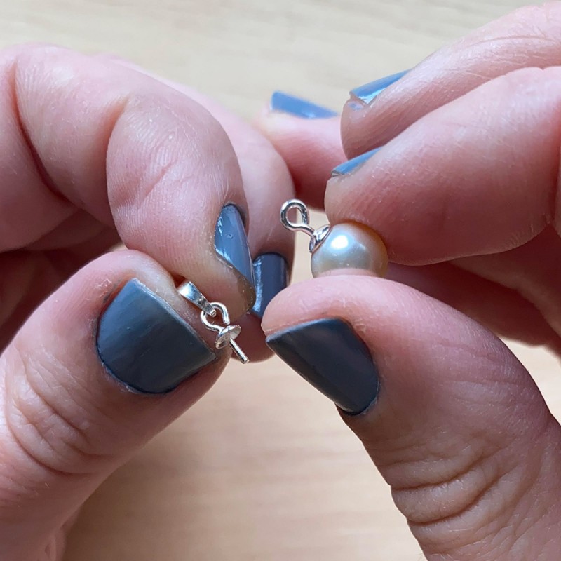 Sac de 6 pcs. Diamètre 4,5 mm. Filetage 0,9 mm.Perle demi-perceuse 8mm. Cristal Perle Blanche