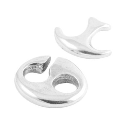 Fermoir Calabrote en zamac avec argenté. Le sac contient 1 unité. La taille est de 29x25 mm. et les trous sont de 10 mm.