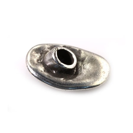 Fermoir à bouton sur zamac avec argenté. Le sac contient 1 unité. La taille est de 21x16 mm. et est pour un cordon de 5 mm.