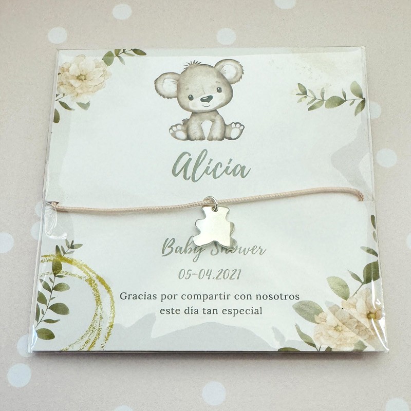 Surprenez vos invités en créant à la main les détails de votre baby shower, en leur offrant ce magnifique bracelet avec pendentif nounours qu'ils pourront porter tous les jours pour se souvenir de cette belle journée.