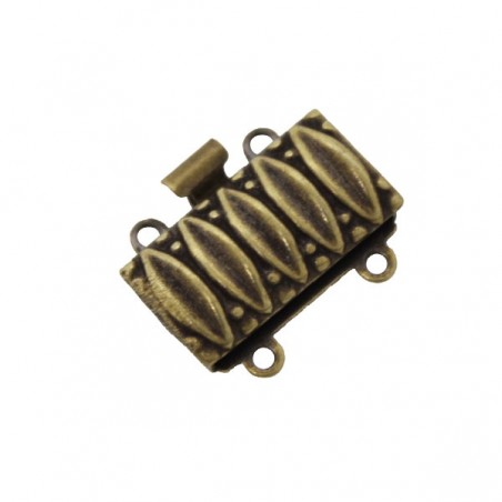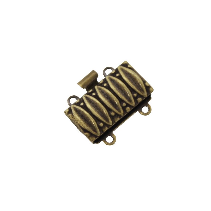 Fermoir granulaire en laiton à 2 tournants de couleur or ancienne. Le sac contient 1 unité. La taille est de 16x4 mm. et a des trous de 1 mm.