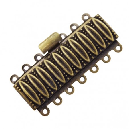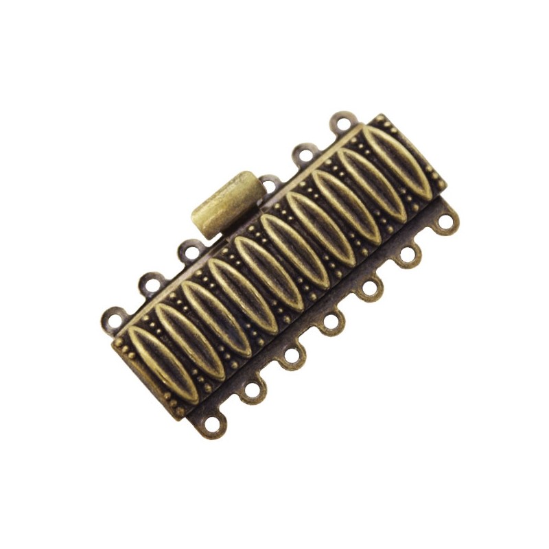 Boîte de fermoir 7 tours en laiton grainé de couleur or ancien. Le sac contient 1 unité et la taille est de 37x14 mm.