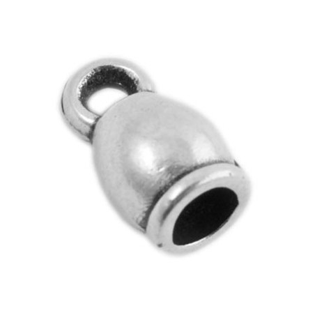 Embout cloche avec sonnerie en zamac avec argenté. Le sac contient 2 unités. La taille est de 6x11 mm. et est pour un cordon de 3,5 mm.