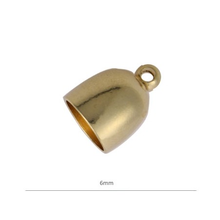 - Embout avec bague dans zamac bain d’or. - La taille du trou est de 6 mm. - Le prix est par sac et le sac comprend deux unités.