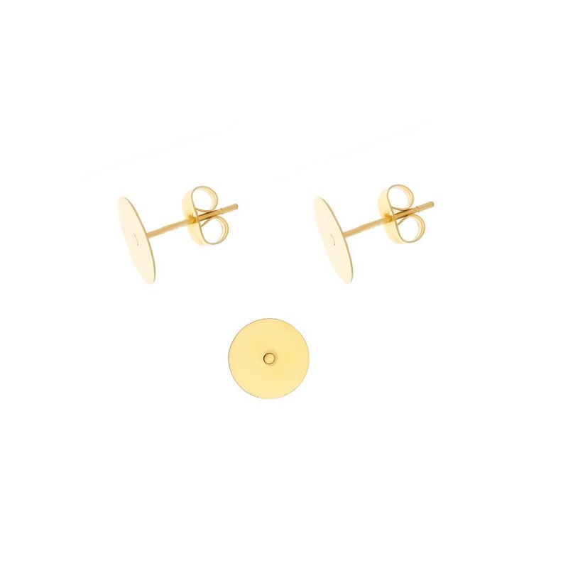 Clous d'oreilles disque 5 mm en acier inoxydable doré. S´utilisent avec de la colle type Hasulith.