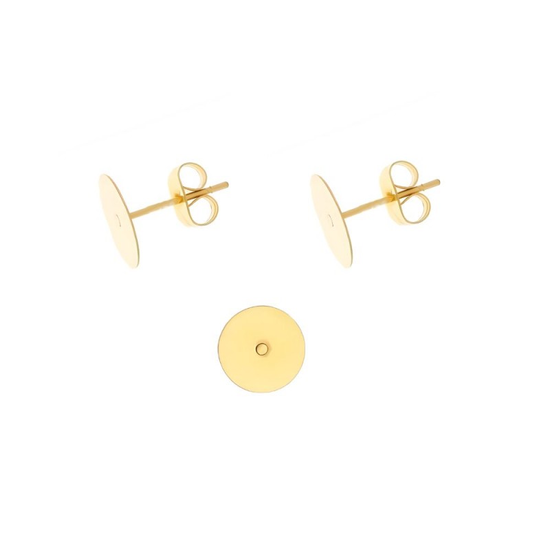 Clous d'oreilles disque 6 mm en acier inoxydable doré. S´utilisent avec de la colle type Hasulith.