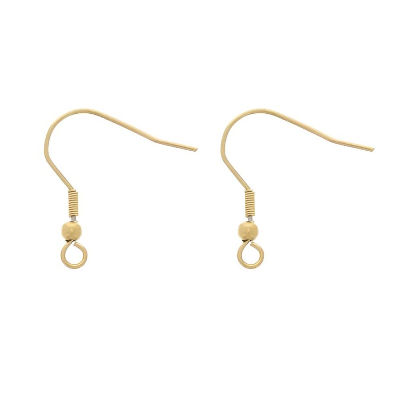 Crochets d'oreilles 21 mm avec anneau ouvert en acier inoxydable doré.