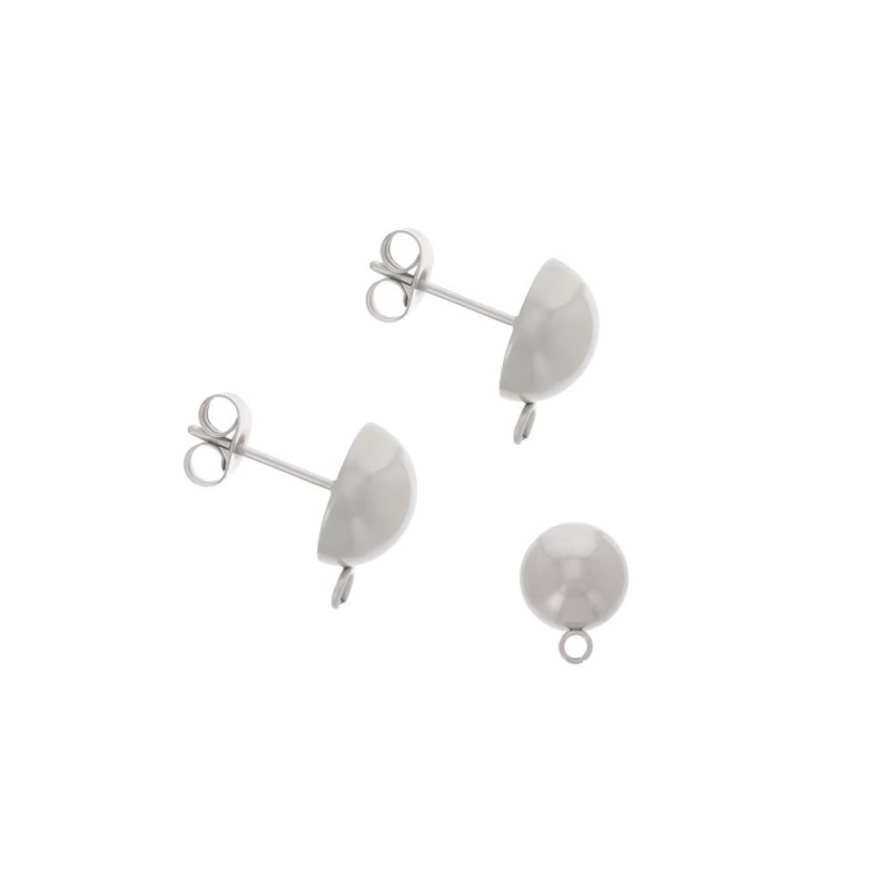 Clous d'oreilles demi-boule 7 mm. Acier inoxydable.
