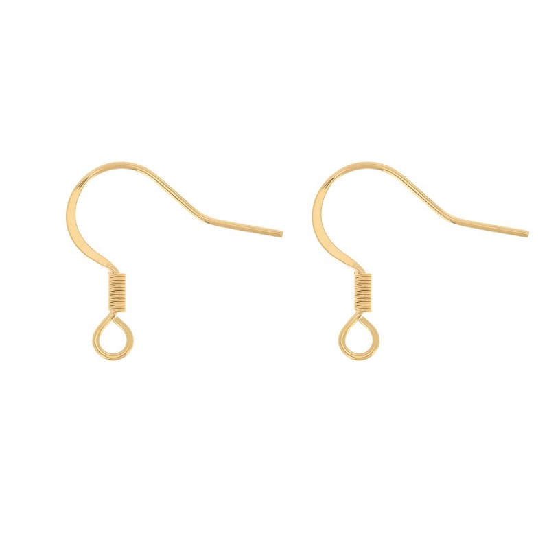Crochet de boucle d'oreille hippie à ressort avec anneau ouvert 21 mm. Acier inoxydable doré.