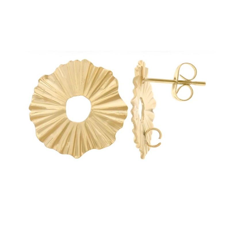 Apprêts boucles d'oreilles marguerite 17 mm - trou 3,5 mm avec poignée ouverte. Poignée ouverte diamètre 4mm. Acier inoxydable doré.