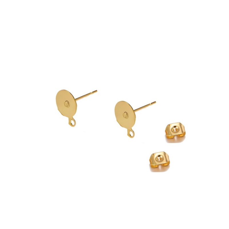 Sac de 10 pcs.Clous d'oreilles disque 6 mm. Acier inoxydable doré.
