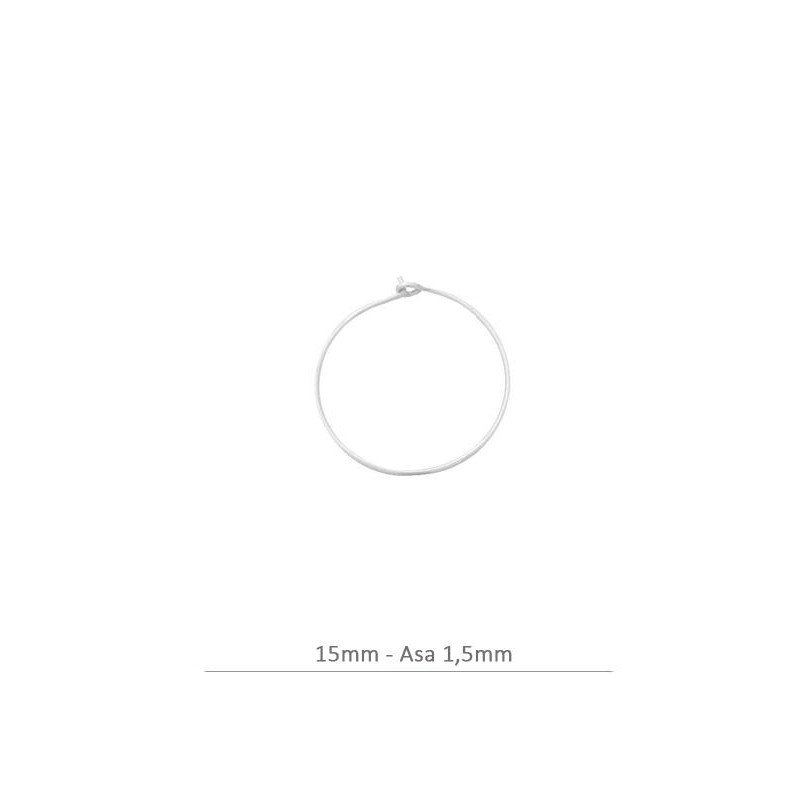 - Boucles d’oreilles en argent 925. - Fornituras boucles d’oreilles cerceau 15mm - anneau 1.5mm. - Le prix est par sac et le sac contient 2 unités.