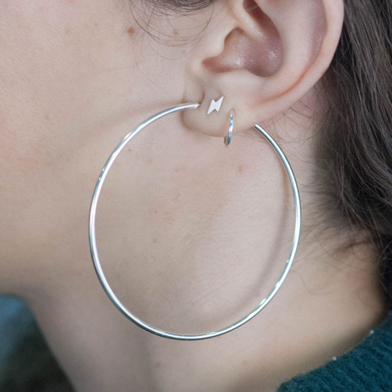 Boucles d’oreilles en argent 925. Le sac contient 2 unités. Le diamètre est de 70mm et le filetage est de 2mm.