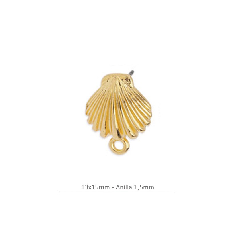 Boucle d’oreille en coque 13x15mm avec bague. Zamac plaqués d’or. Le sac contient 2 unités et 2 Poussoirs - Poussettes.