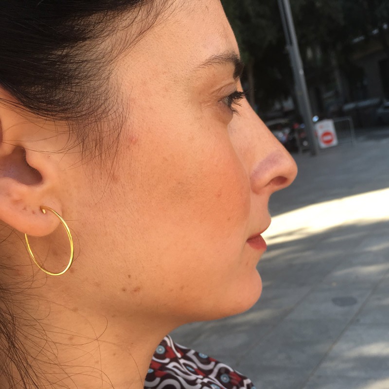 Boucles d’oreilles en cerceau en argent 925 avec placage d’or. Le sac contient 2 unités. Le diamètre est de 26 mm et le filetage est de 1,5 mm.
