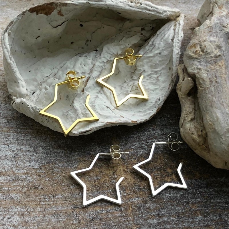 - Boucle d’oreille créole étoile argent 925. - Sa taille est de 19 mm - Le prix est par sac et le sac contient 2 unités avec 2 Poussoirs - Poussettes.