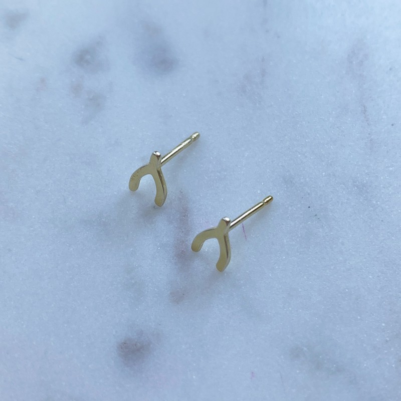 Boucles d’oreilles Lucky mini wishbone en argent 925 argent 925 doré 18k, fabriquées en Espagne.