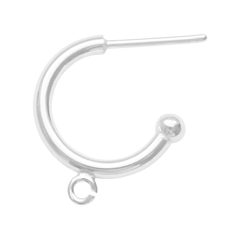 Boucle d’oreille créole 14 mm avec anneau et boule 3mm. Argent 925