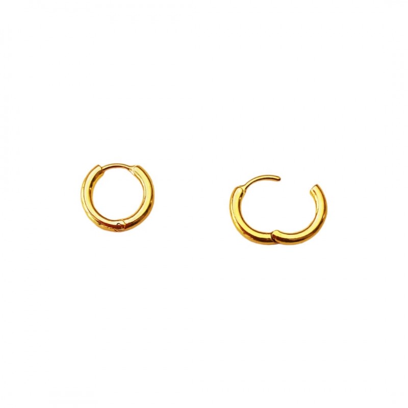 Boucles d’oreilles créoles automatiques en argent 925, baignées dans de l’or 18 carats et fabriquées en Espagne.
