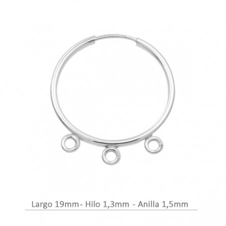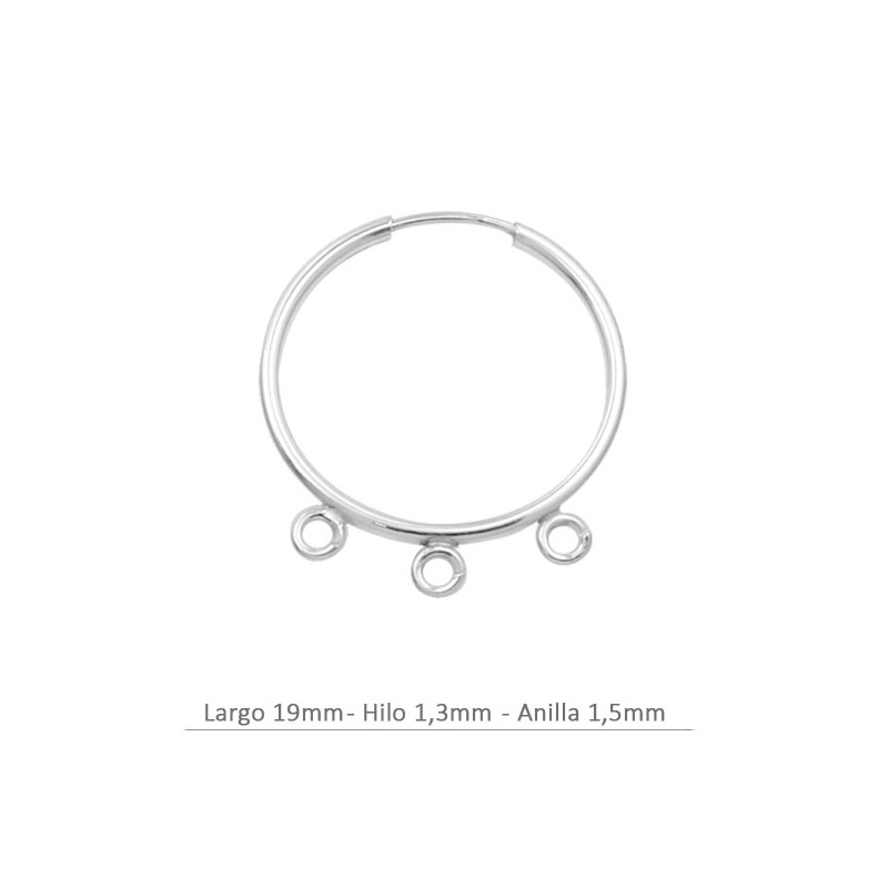 Boucle d’oreille créole nº3 avec 3 bagues, en argent 925. Le sac contient 2 unités et le diamètre intérieur est de 15,5 mm.
