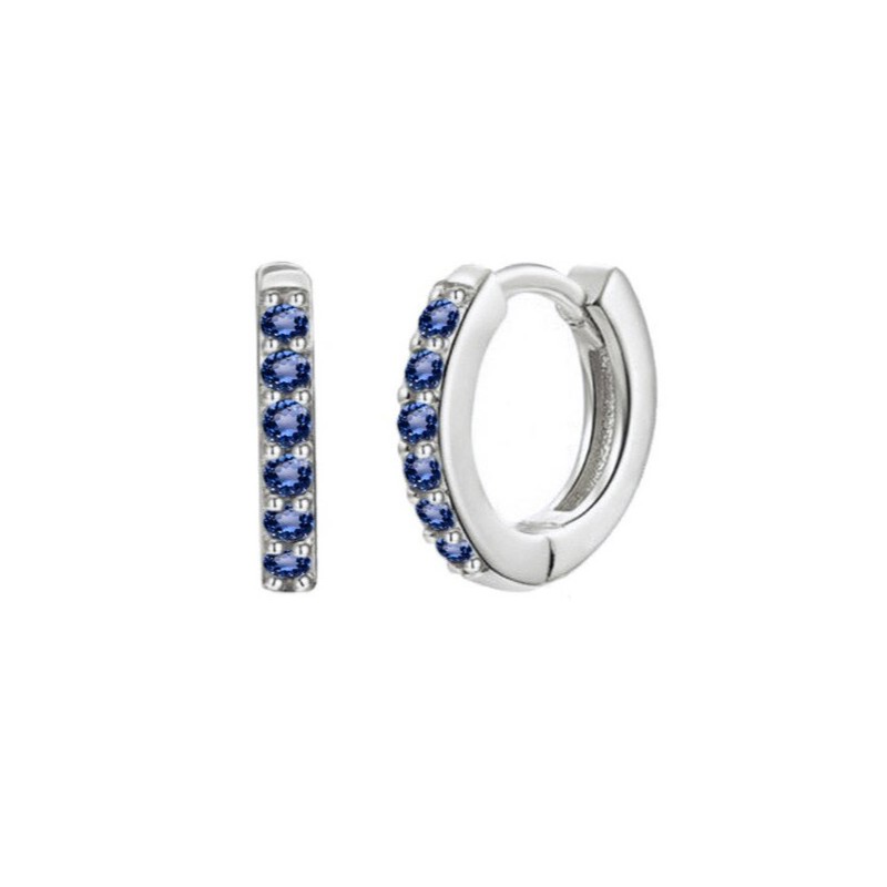 Boucles d’oreilles créoles automatiques en argent 925 avec zircons en bleu cobalt.