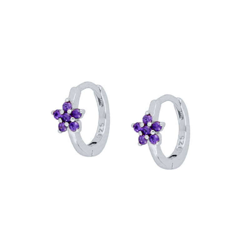 Créole fleur 4 pointe zirconite lilas 11.5mm. Argent 925