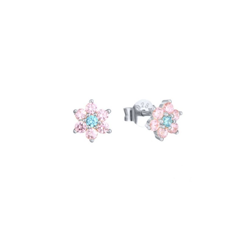 Boucles d’oreilles fleur zirconites rose et bleu argent 925
