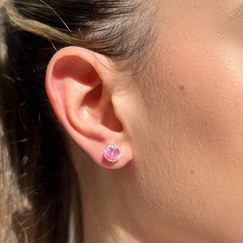 Boucle d’oreille zircon rose 7 mm. Argent sterling 925.