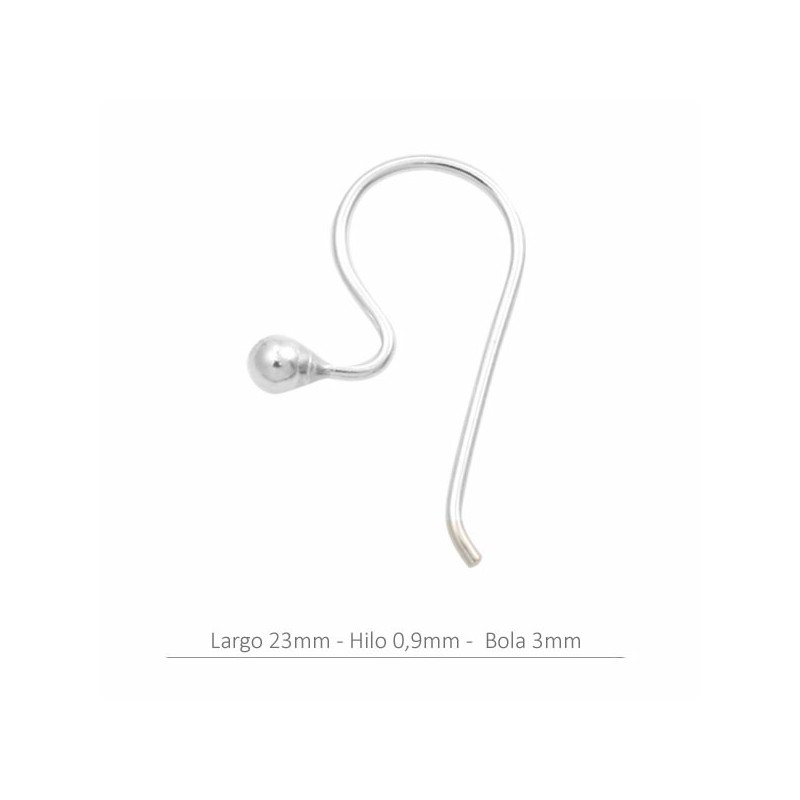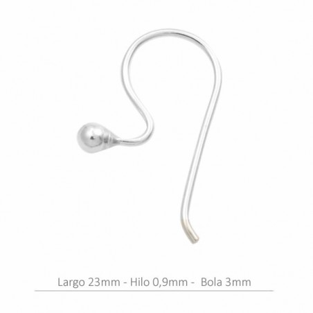 Crochet avec boule, en argent 925. Le sac contient 2 unités. La taille est de 24x10 mm. et la balle est de 3 mm.