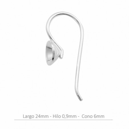 Crochet avec cône, de grande taille, pour Swarovski simile, en argent 925. Le sac contient 2 unités. La taille est de 24x10 mm. et le cône est de 6 mm.