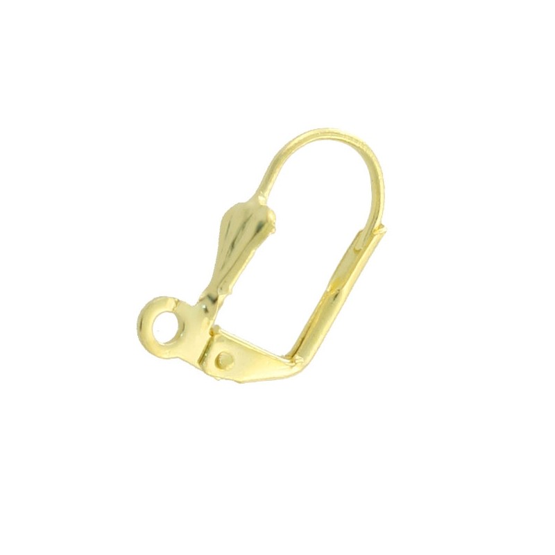 Boucle d’oreille arbalète avec bague en laiton de couleur or. Le sac contient 4 unités. La taille est de 15 mm. et la bague est de 1,5 mm à l’intérieur.