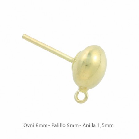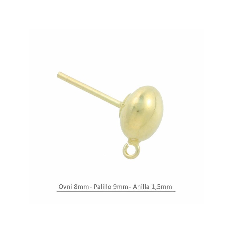 Boucle d’oreille en boule avec bague de petite taille et Poussoirs - Poussettes, argent avec un placage d’or. Le sac contient 2 unités. La taille de l’OVNI est de 8 mm. et l’anneau est de 1 mm.